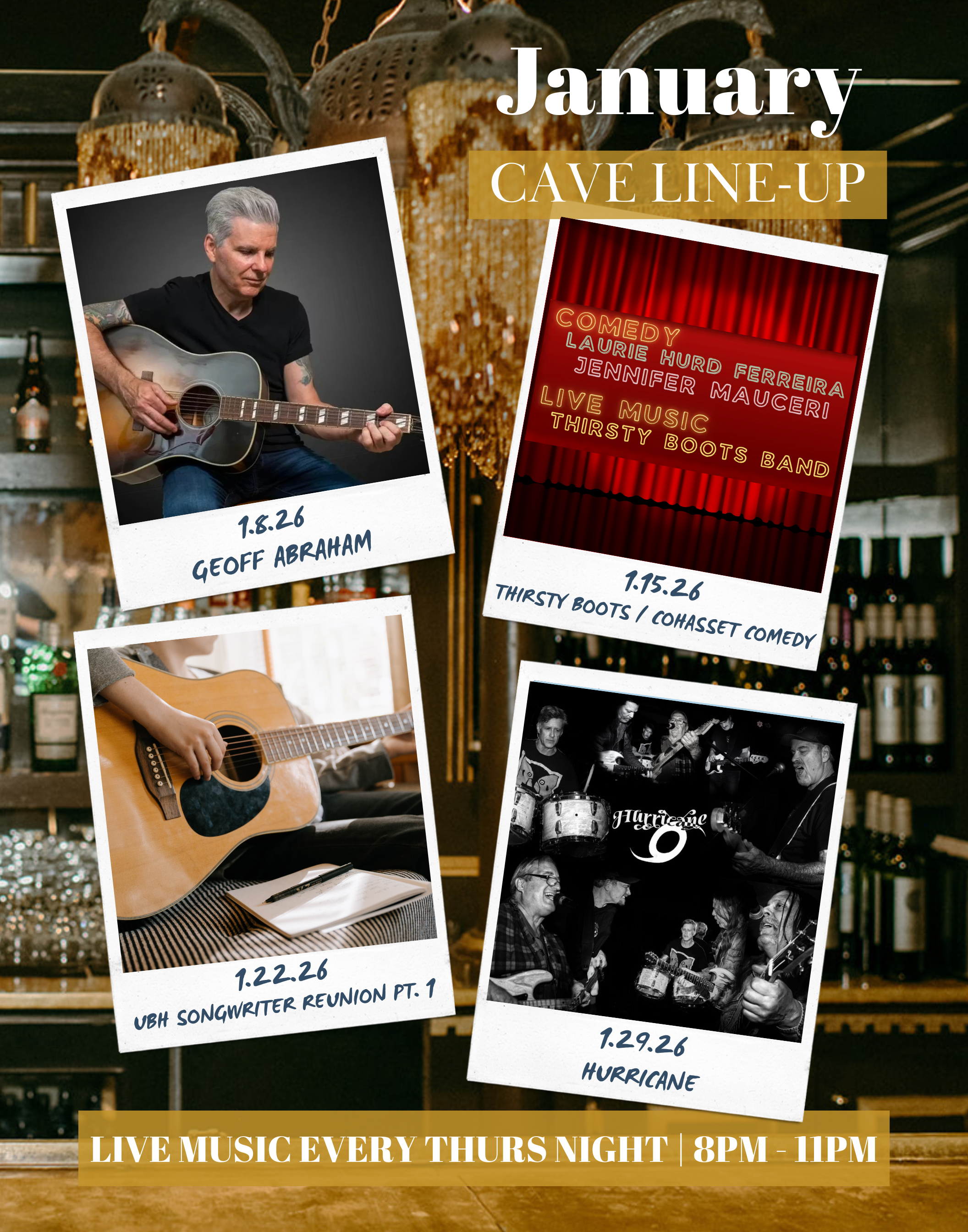 The Cave is one of the South Shore's premiere venues, featuring a full bar, wine cellar, and dance floor.